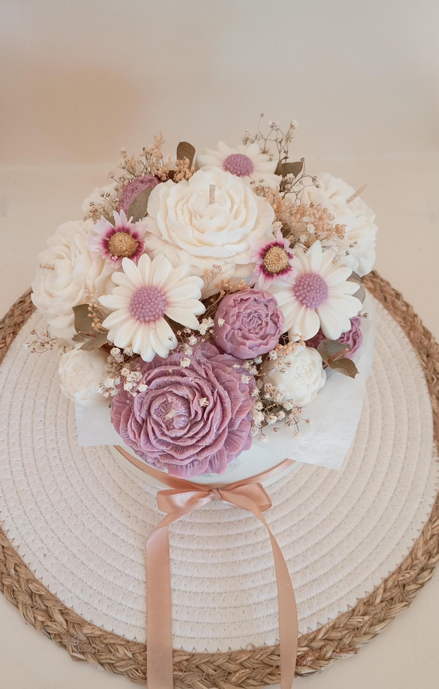 Boîte de fleurs de cire XXL – Parfum Pivoine