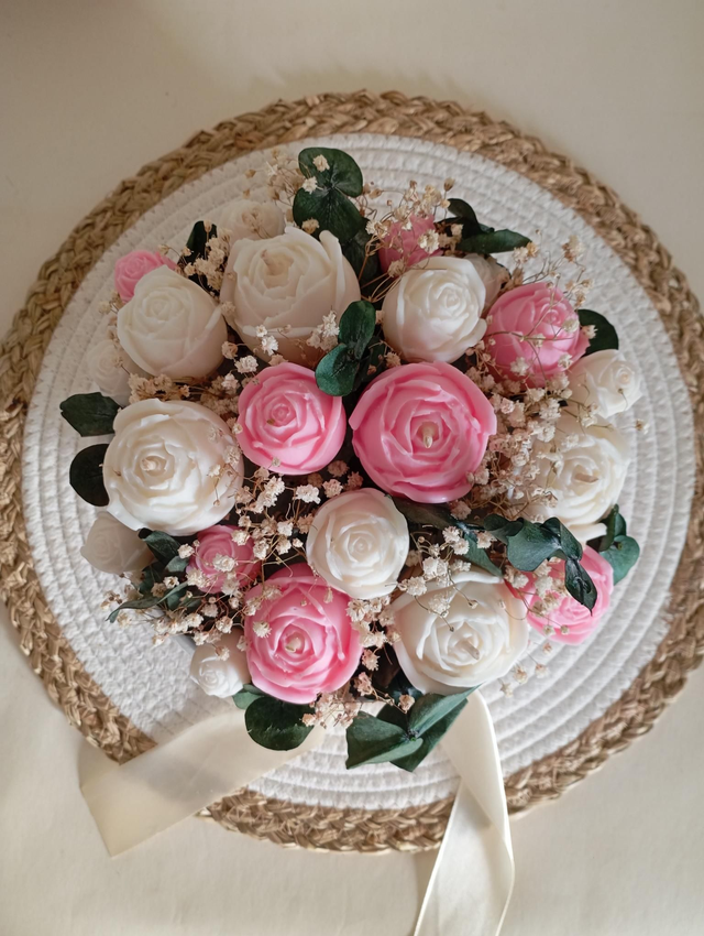 Ce bouquet incarne la délicatesse et l’élégance, tout en reflétant la douceur des bougies .